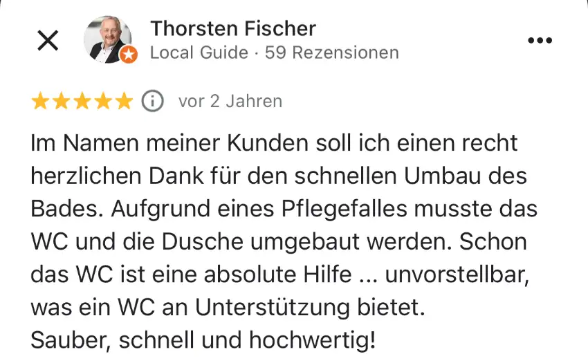 Wir bieten Ihnen volle Kostentransparenz. Bei der Besichtigung zeigen wir Ihnen alle Kostenpunkte für Ihr neues Bad. Ihr bad kann schon ab 5.198 € durch uns Seniorengerecht umgebaut werden.