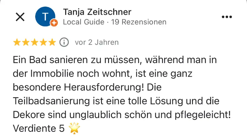 Die Sanierung kann in etwa 4-6 Wochen starten. Da wir das ganze Jahr über arbeiten und keinen festen Betriebsurlaub haben, sind wir flexibel. Sie können Ihr bevorzugtes Umbau-Datum auswählen. Klicken Sie dafür Hier